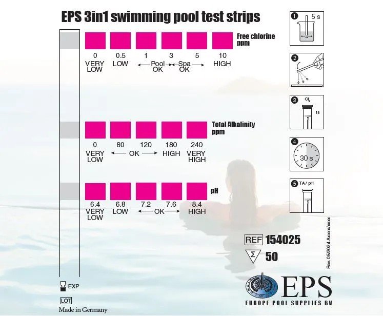 These 3 in 1 Insta Test strips are ideal for easily checking the three main parameters of your pool water quality. Test strips are inexpensive and simple to use. The packaging, which has been adapted for longer shelf life, contains 50 strips. This allows you to perform a quick check of water quality on a regular basis.